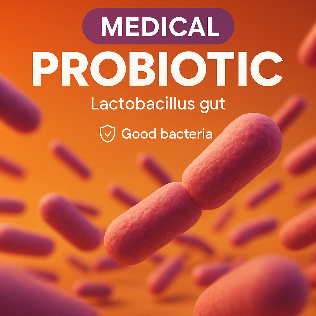 Illustrative Medical Graphic of Probiotics and Bacteria