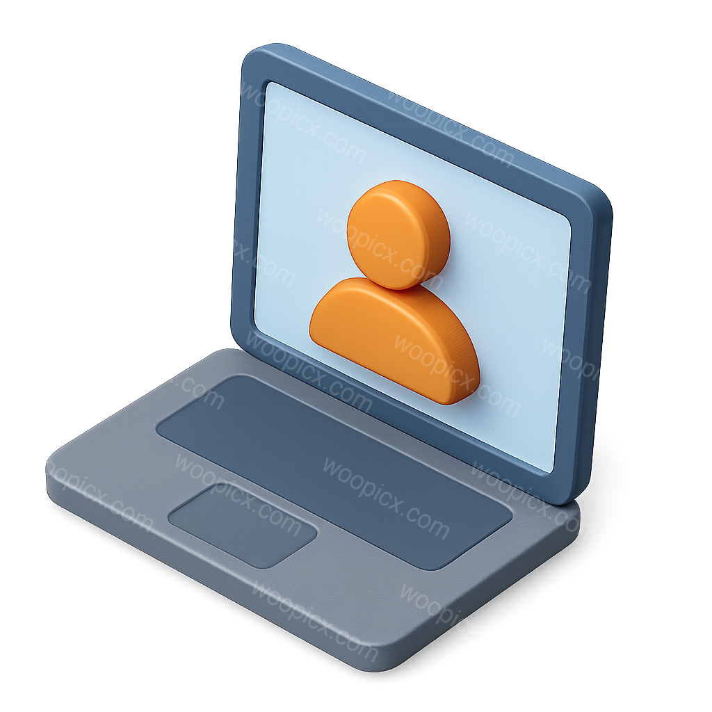 A vibrant 3D icon of a laptop featuring a simplified user figure on the screen. The design showcases an isometric view with a transparent background, emphasizing a modern and sleek aesthetic.