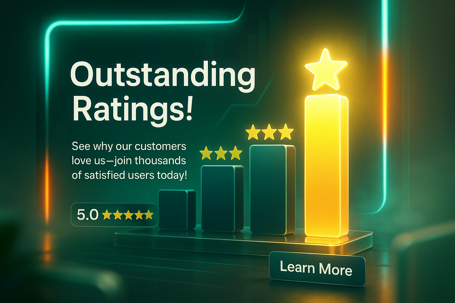Promotional Graphic Highlighting Customer Reviews and Testimonials