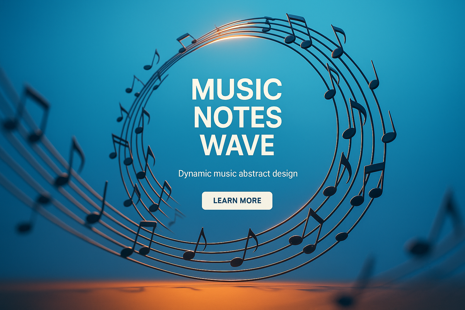 This image features an abstract design of music notes forming a wave, ideal for promoting musical themes and events. It uses a modern visual style with a gradient background.