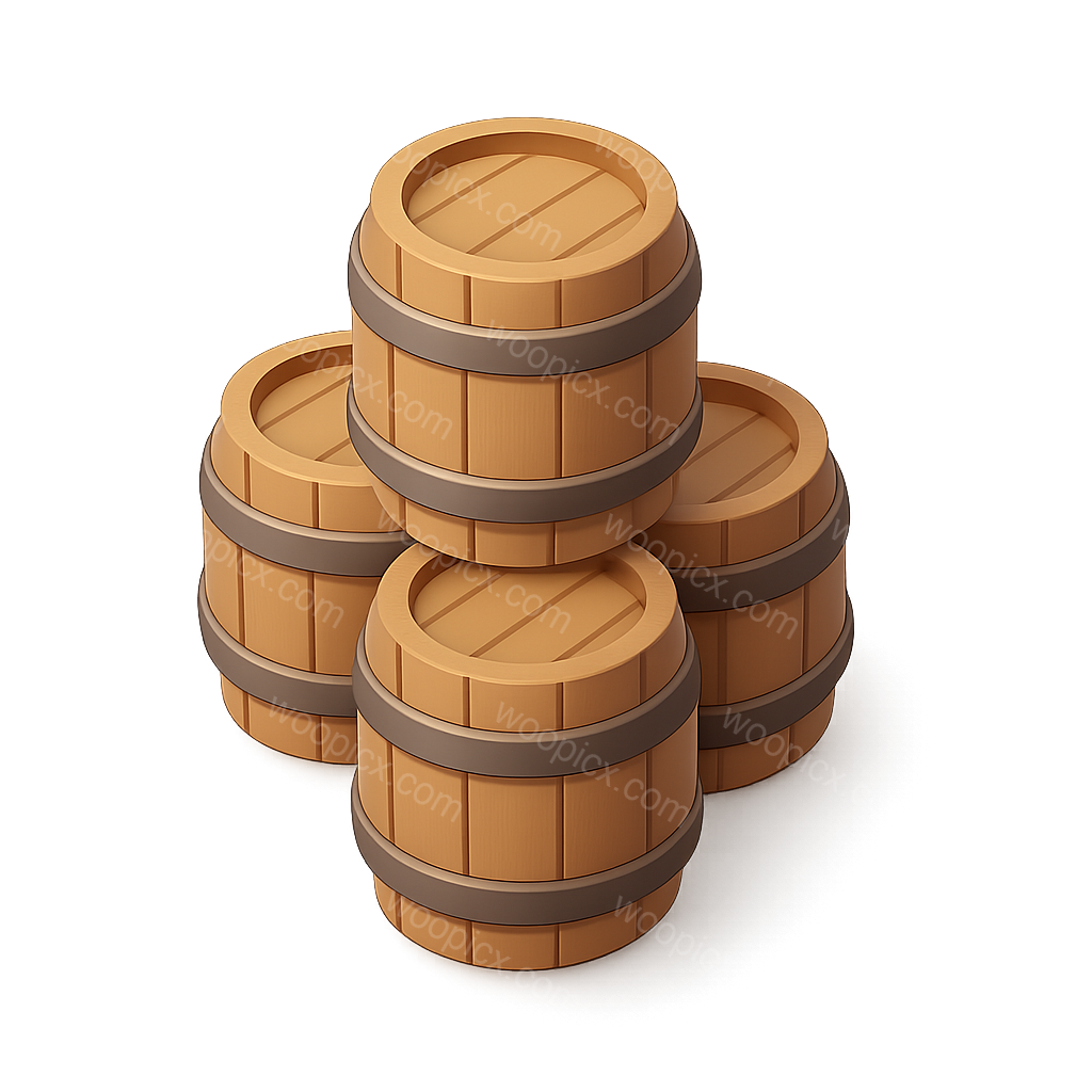 /Premium/Collection: /by davooda/Type: PNG/A visually appealing 3D icon representing a stack of wooden barrels. The barrels are depicted in a three-quarter isometric view, showcasing their rounded shapes and wooden texture against a soft gradient background.