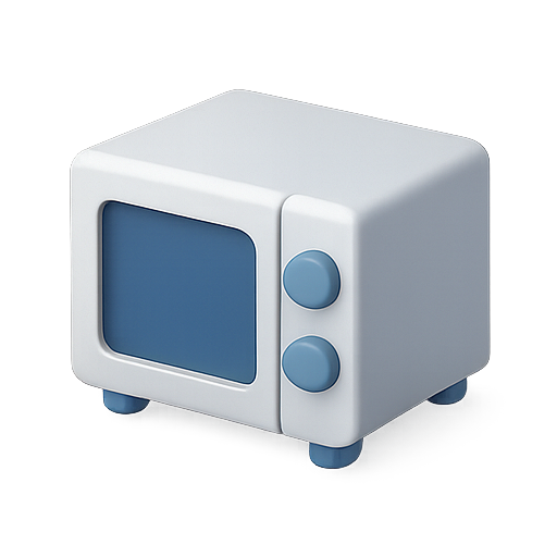 A playful 3D rendering of a microwave, featuring a minimalist design and soft color palette, ideal for kitchen-related graphics or product design.