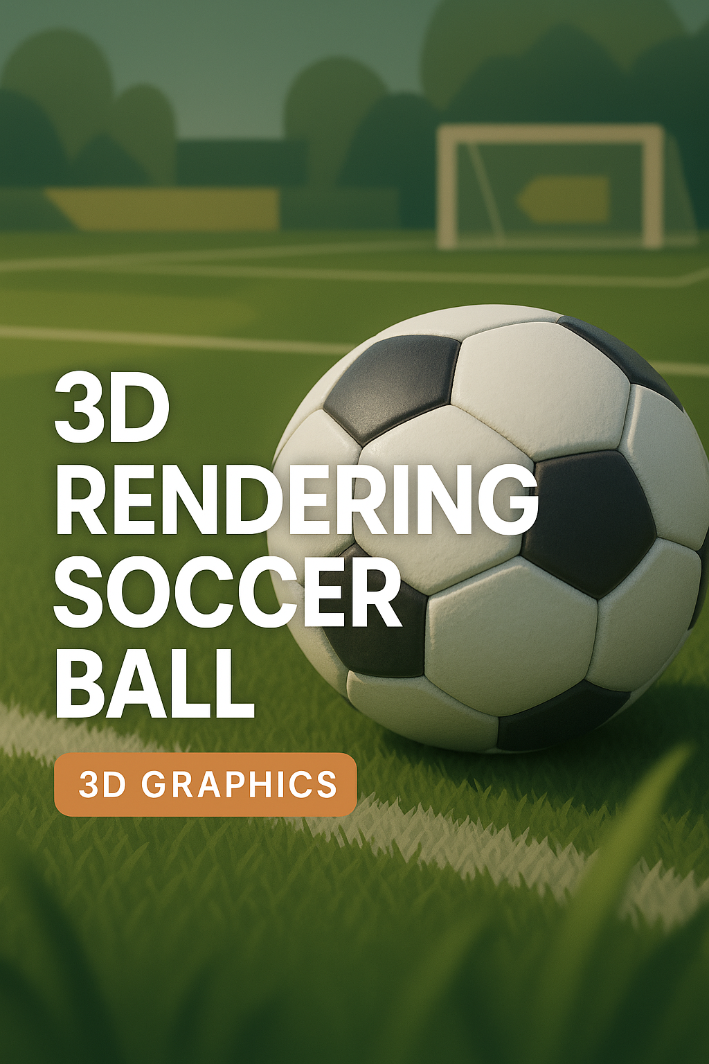 A detailed 3D rendering of a soccer ball placed on a grassy field, showcasing vibrant colors and realistic textures. Ideal for sports-related graphics or promotional materials.
