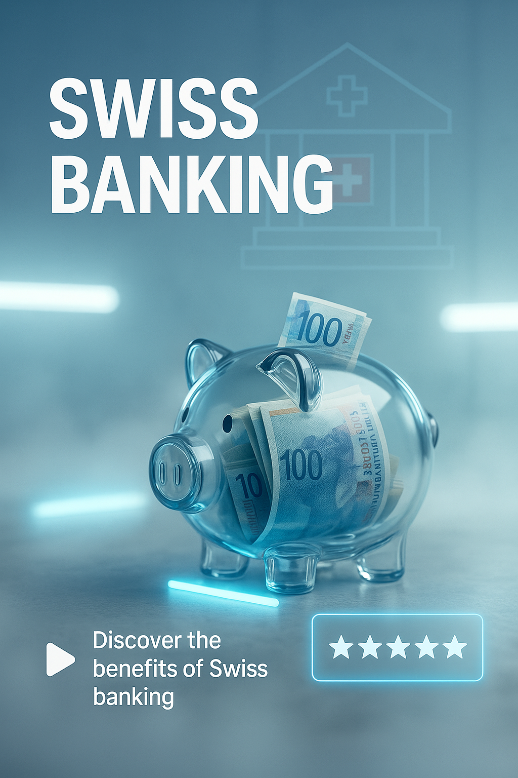 Promotional Image for Swiss Banking Services with Piggy Bank