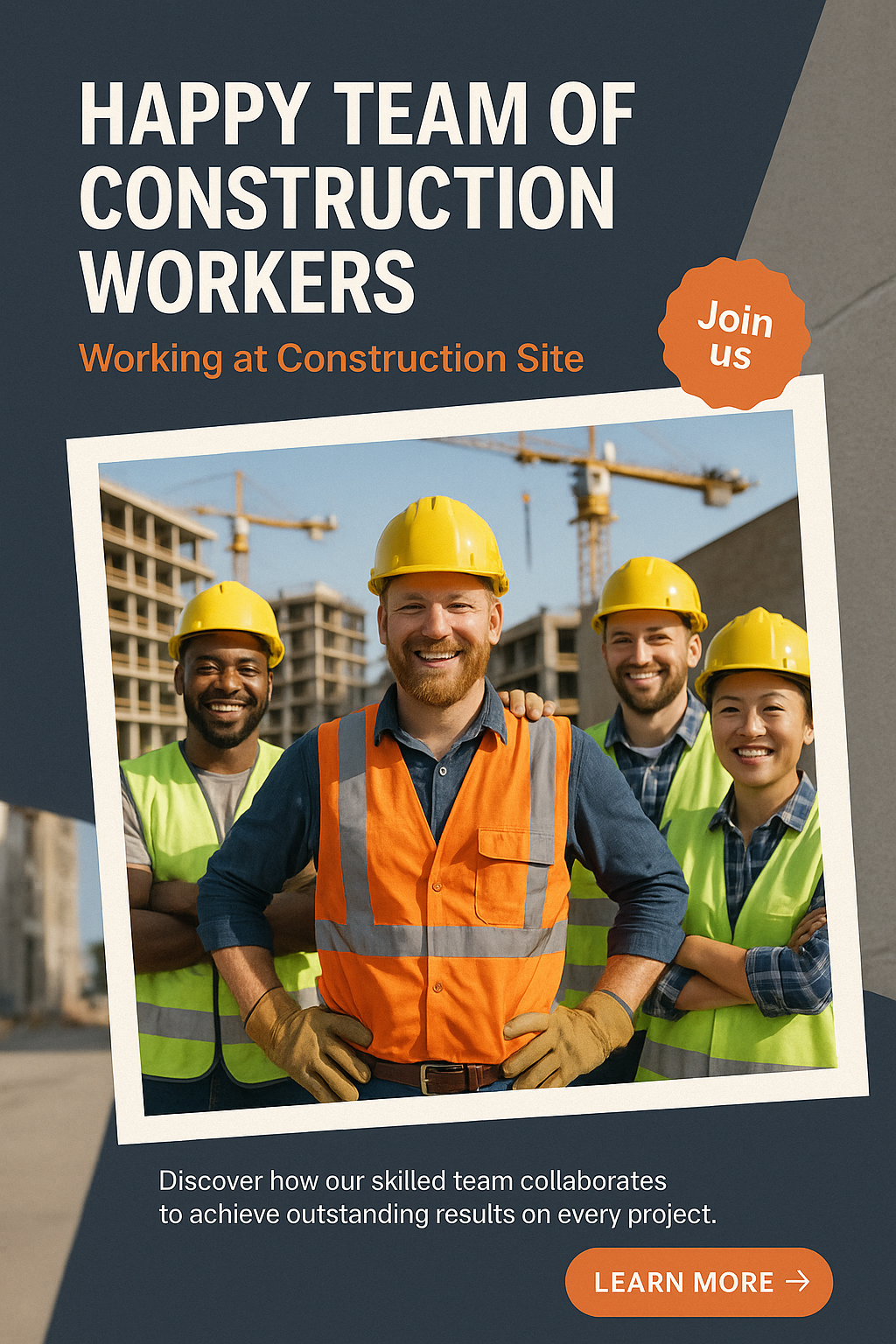 Dynamic Construction Advertisement Featuring a Smiling Worker