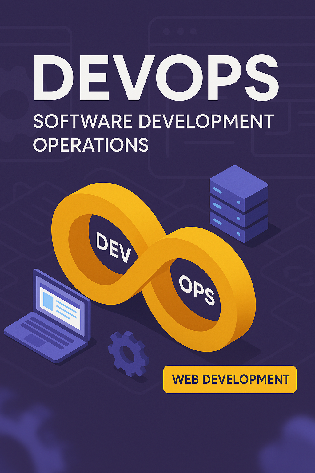 Illustrative graphic representing DevOps in software development, featuring a bold infinity symbol with related tech elements. Ideal for tech marketing and educational content.