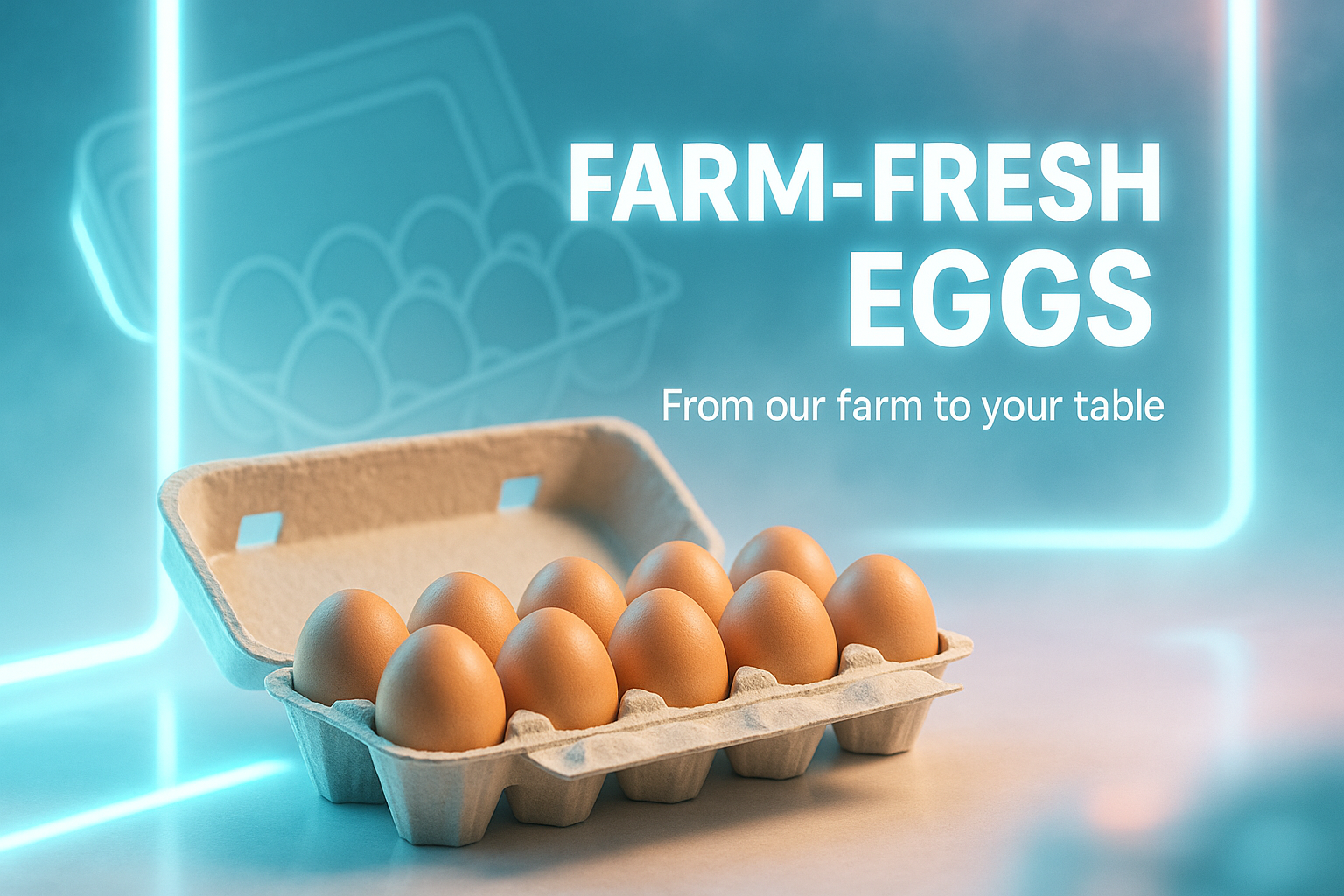 Farm Fresh Eggs Promotional Image with Modern Aesthetic