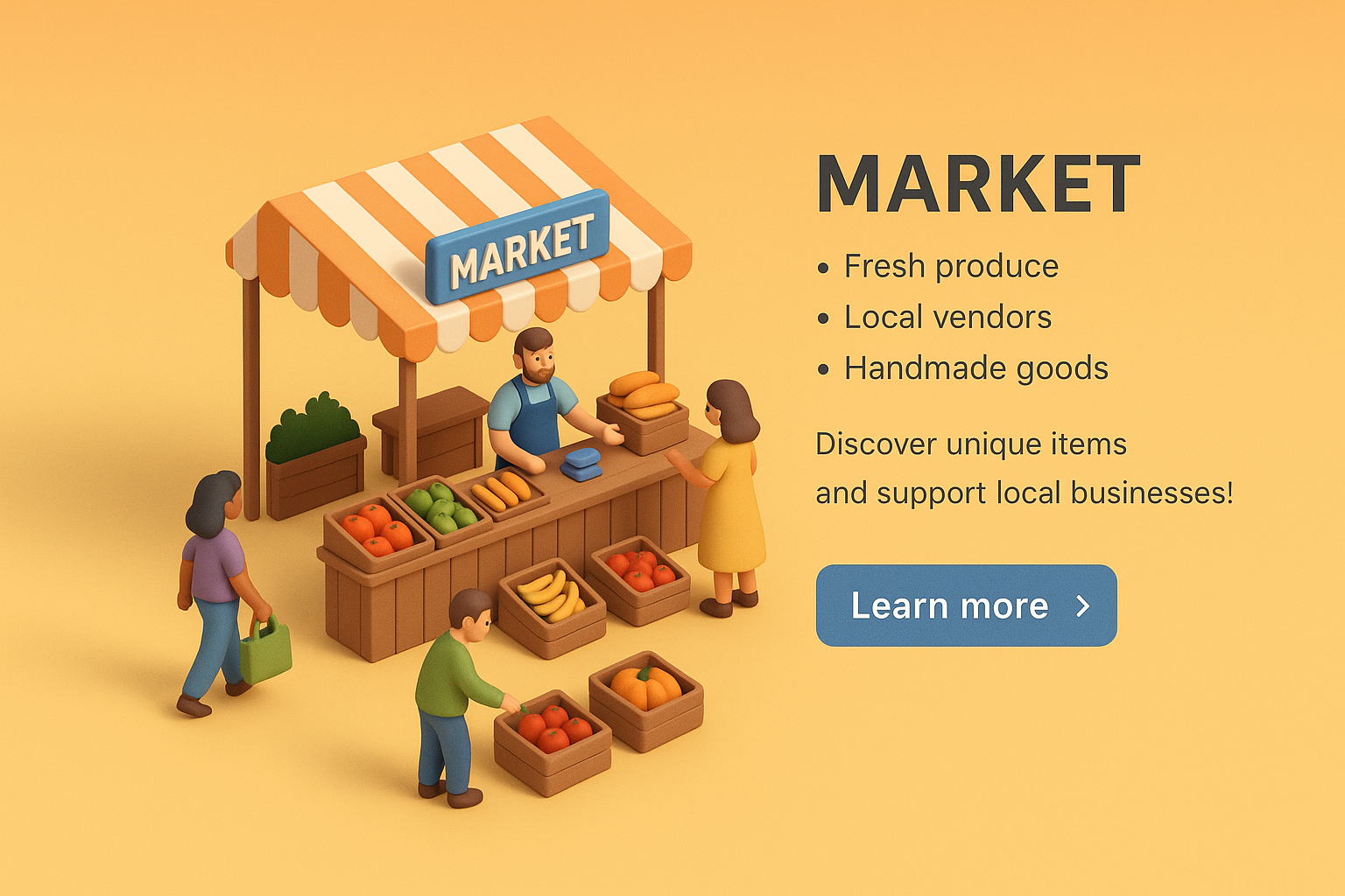 /Collection: /by davooda/Type: PNG/A detailed 3D scene showcasing a miniature market with vibrant colors. Small characters interact around a vendor's stand filled with fresh produce and handmade goods.