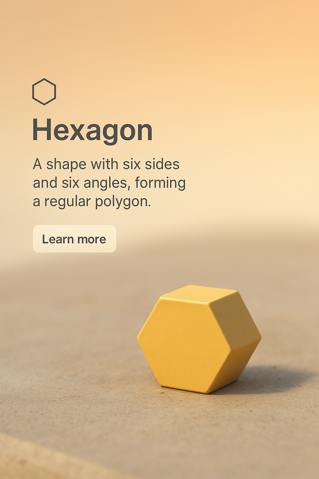 /Collection: /by davooda/Type: PNG/A visually appealing 3D representation of a hexagon on a smooth gradient background, with a clear label and action button. The scene emphasizes simplicity and realism.
