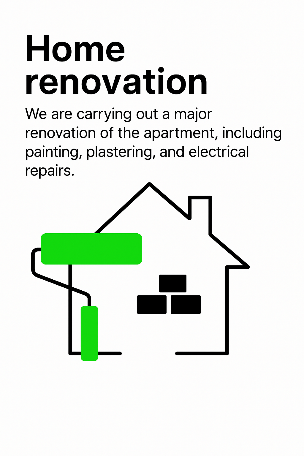 /Collection: /by davooda/Type: PNG/Modern promotional graphic illustrating home renovation services with minimalist design elements. Ideal for advertisements or social media posts targeting homeowners.