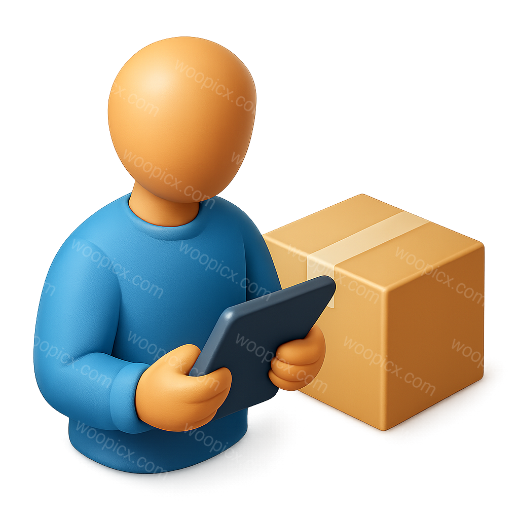 3D Package Icon Featuring Person with Box and Packages