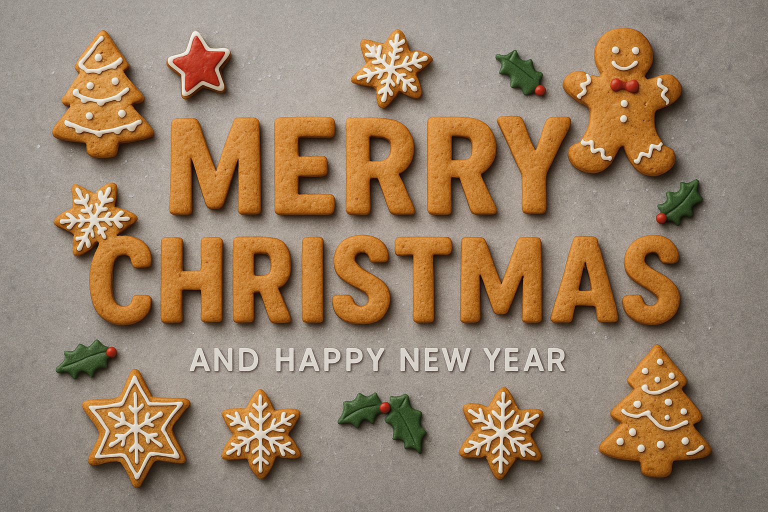 /Collection: /by davooda/Type: PNG/Charming holiday-themed image featuring decorated gingerbread cookies arranged around a festive greeting, ideal for seasonal marketing and social media posts.
