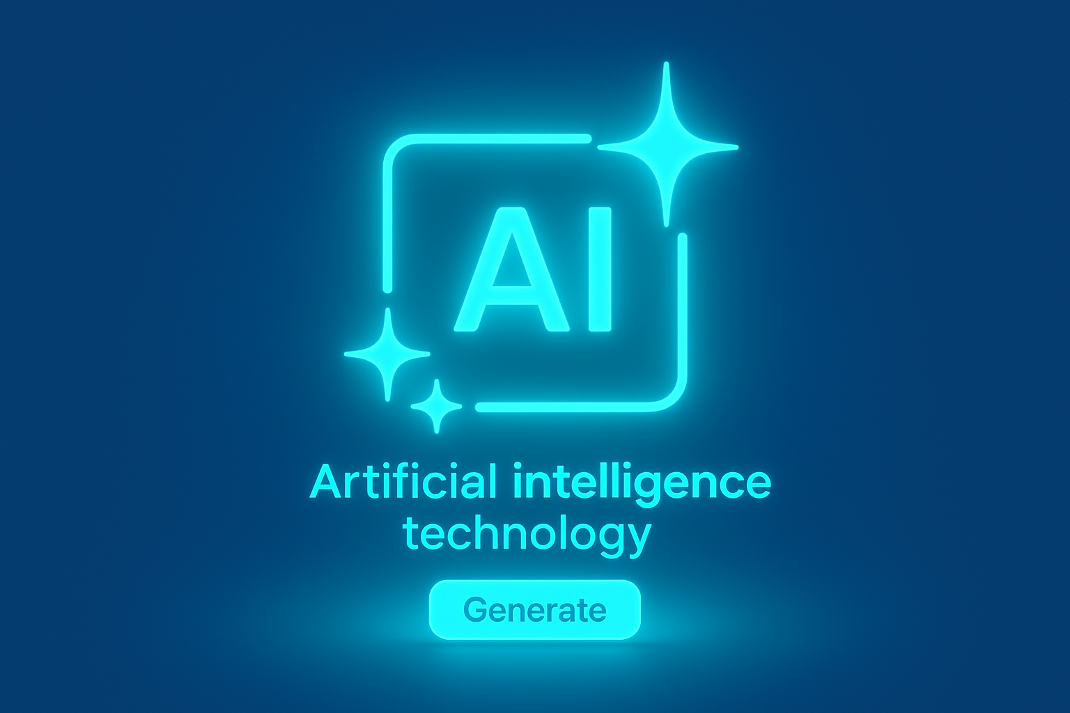 /Collection: /by davooda/Type: PNG/A glowing AI symbol featuring a square with sparkles, representing artificial intelligence technology. The neon aqua and blue colors create a vibrant atmosphere, with a call-to-action button below.