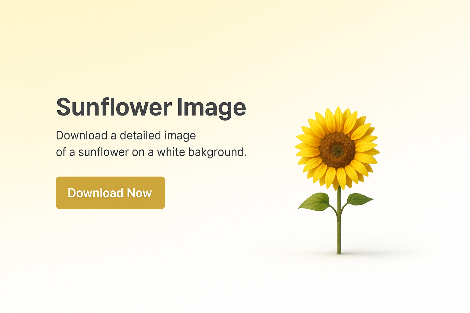 A realistic 3D depiction of a sunflower set against a smooth white gradient background. The image features a prominent sunflower with a clean design, accompanied by a call to action.