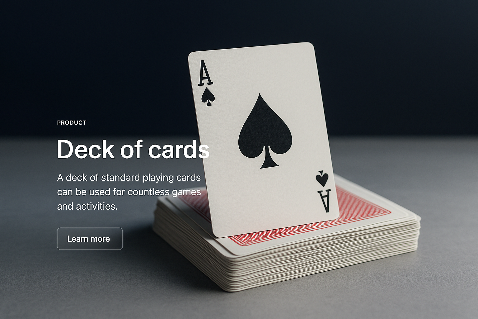 A visually appealing deck of standard playing cards displayed elegantly. The spade ace stands out, emphasizing its use in various games and activities.