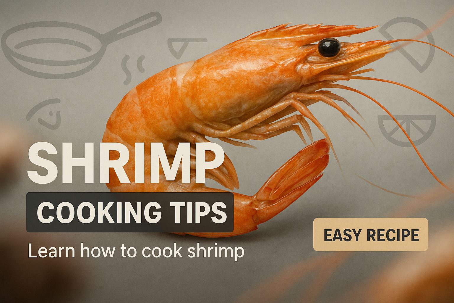 Engaging cooking tips graphic focused on shrimp preparation, with vibrant imagery and a modern design suitable for culinary blogs or recipe platforms.