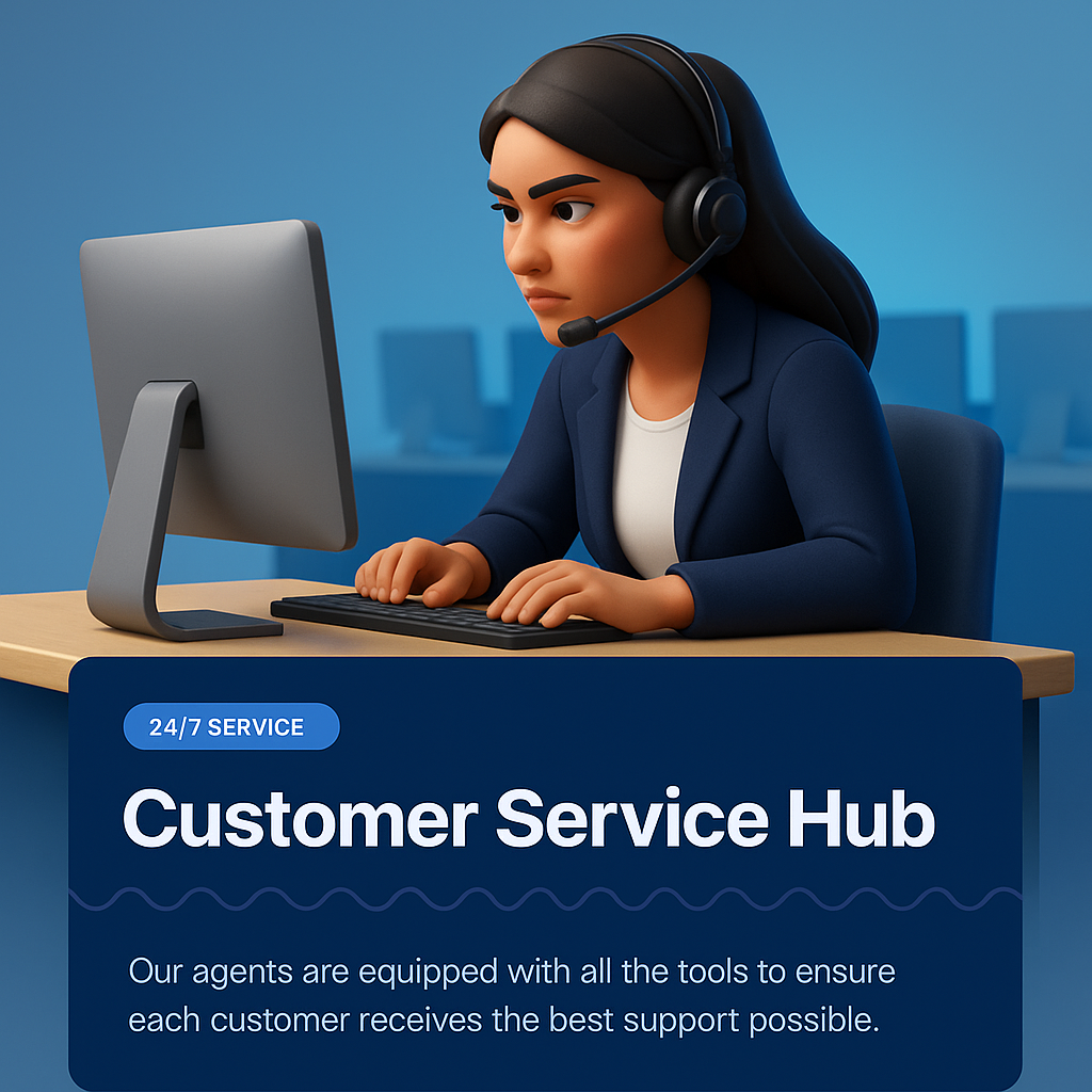 Professional Customer Service Support Graphic Featuring Smiling Agent