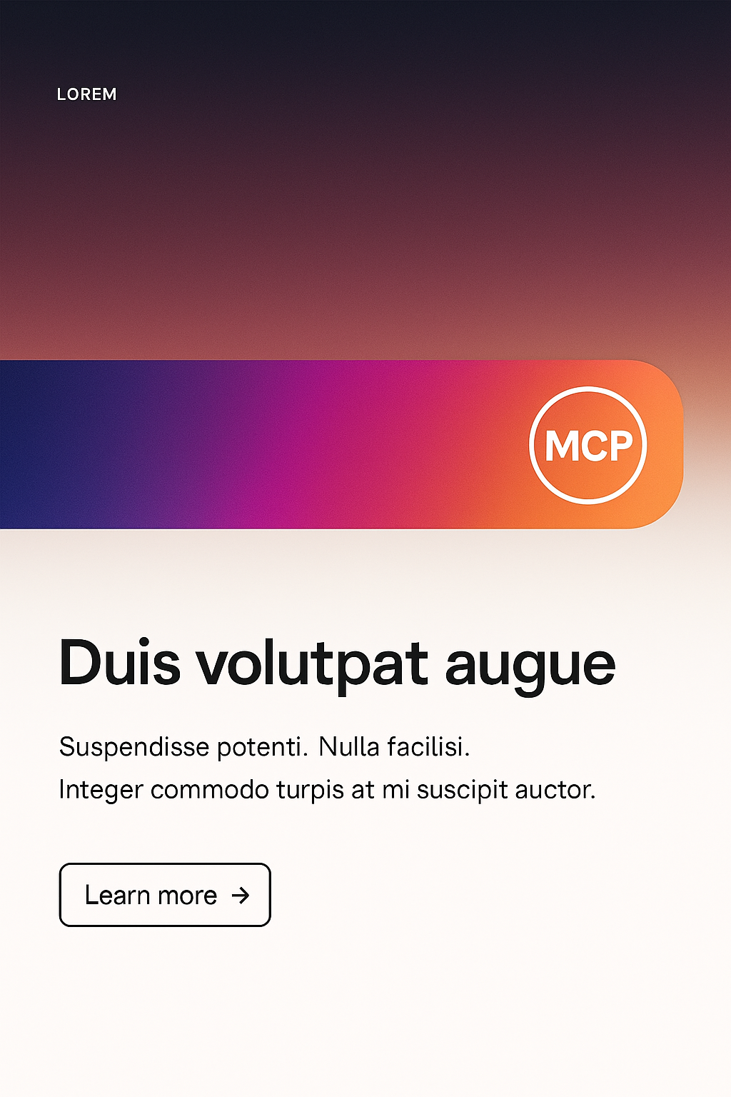 /Collection: /by davooda/Type: PNG/A visually appealing design featuring a dark saturated gradient transitioning to white, with the MCP logo, a concise headline, and a clear call-to-action button.