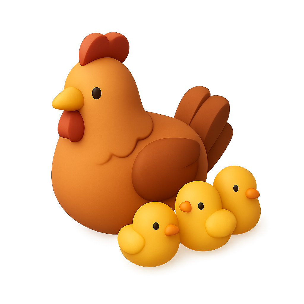Colorful 3D Brood Icon Featuring Hen and Chicks