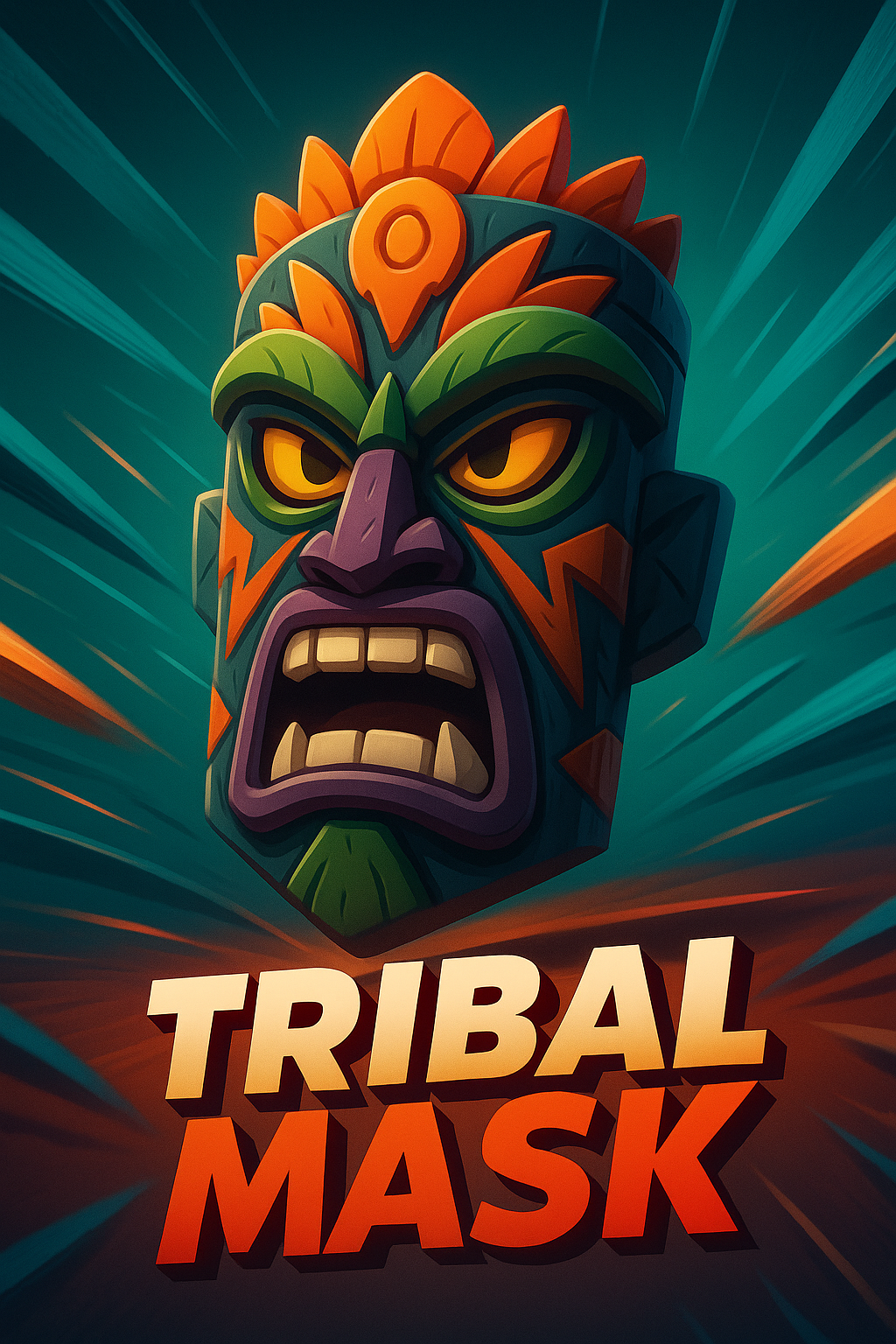 /Collection: /by davooda/Type: PNG/A vibrant 3D illustration of a tribal mask featuring bold colors and dynamic lines radiating from the center. The design emphasizes depth and movement, with a smooth gradient background enhancing the overall composition.