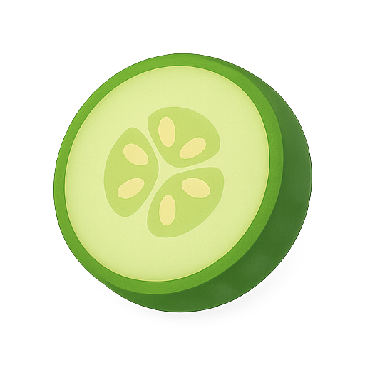 A vibrant, stylized illustration of a cucumber slice featuring bright green colors and a smooth design, ideal for food-related content, health, or beauty themes.
