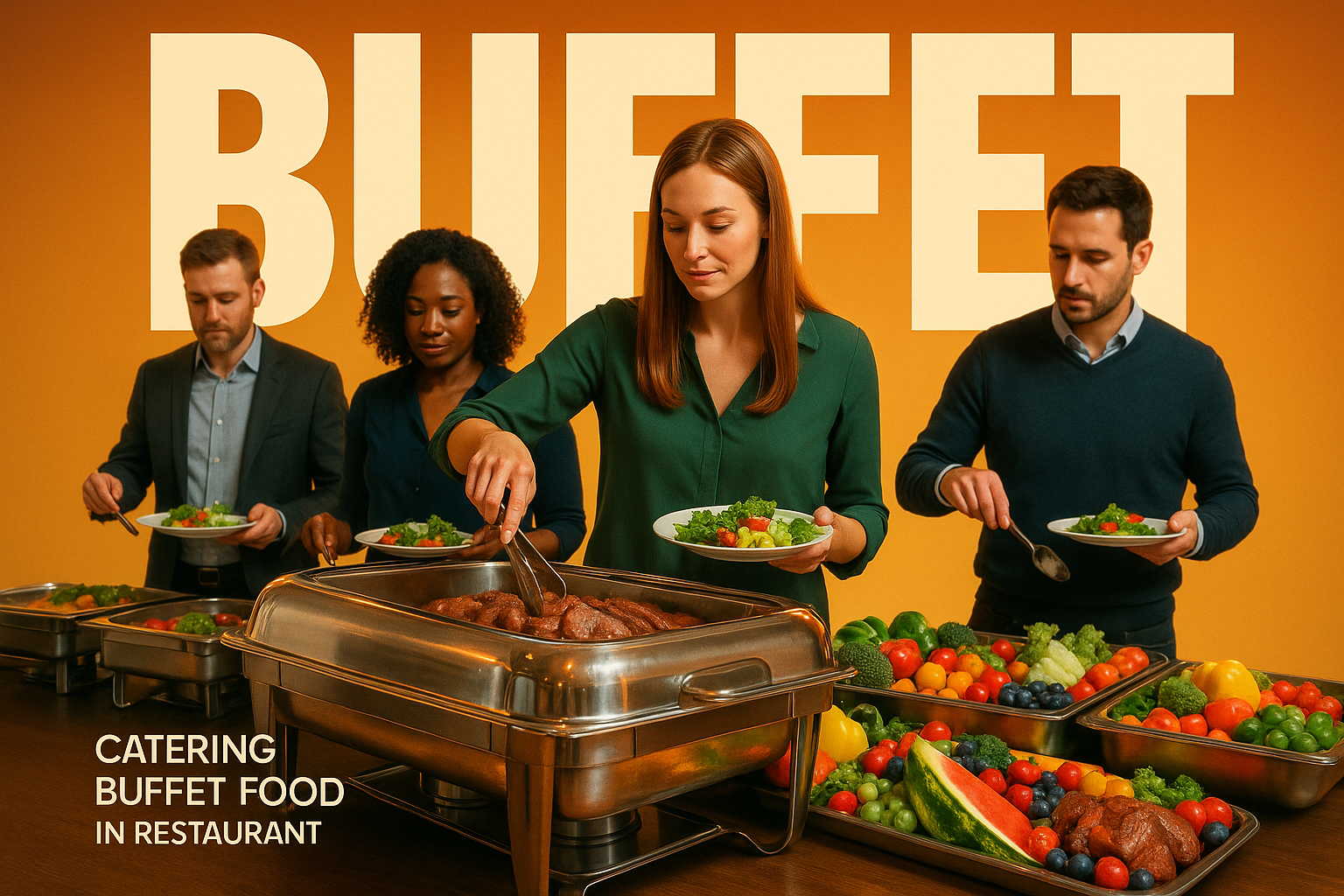 Catering Buffet Scene with Diverse Group Serving Food