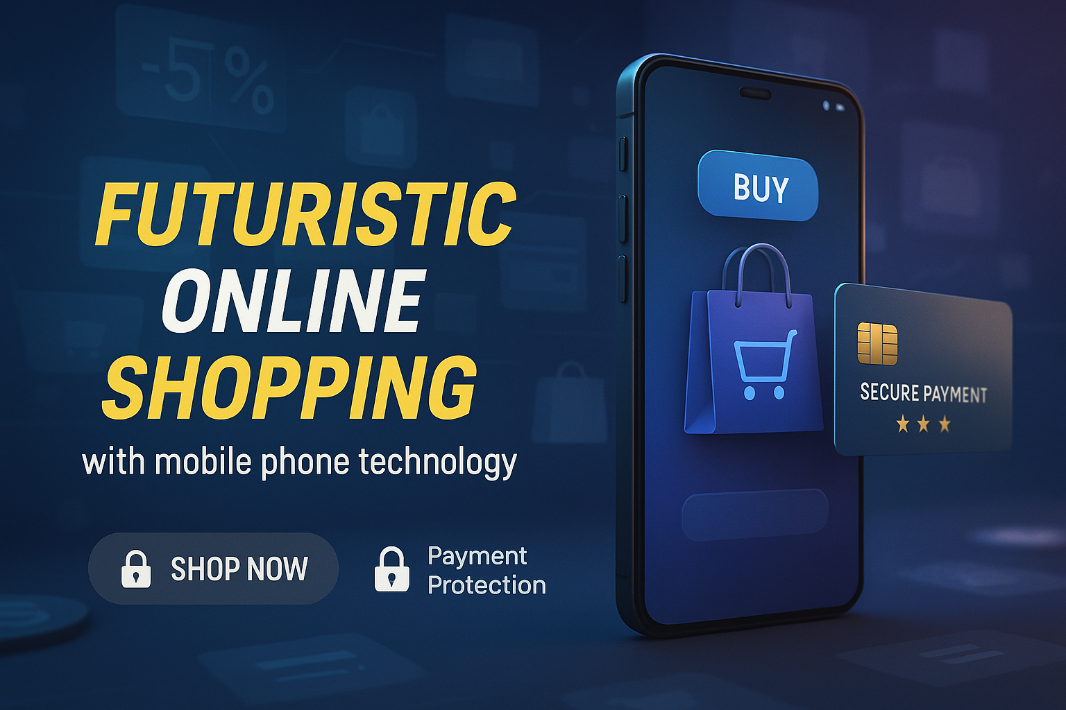 /Collection: /by davooda/Type: PNG/A modern graphic illustrating online shopping through mobile technology, featuring a smartphone with a shopping cart interface. Ideal for e-commerce promotions and digital marketing campaigns.