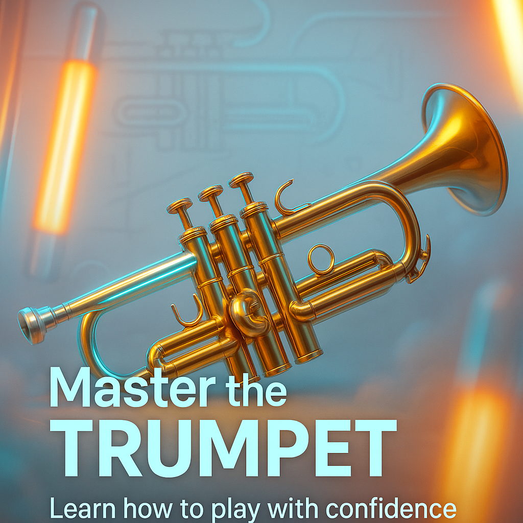 Vibrant 3D illustration showcasing a trumpet, emphasizing music education with a modern design. Suitable for music classes or online tutorials.