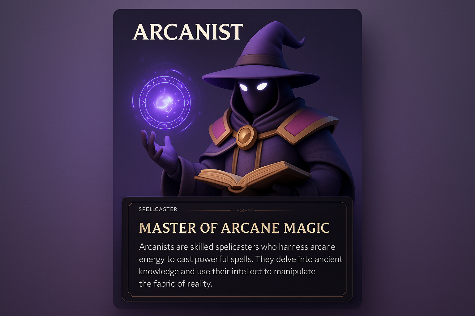 /Collection: /by davooda/Type: PNG/A captivating 3D illustration of an Arcanist character, showcasing magical elements. The design features a dark color palette with layered components, providing depth and realism.