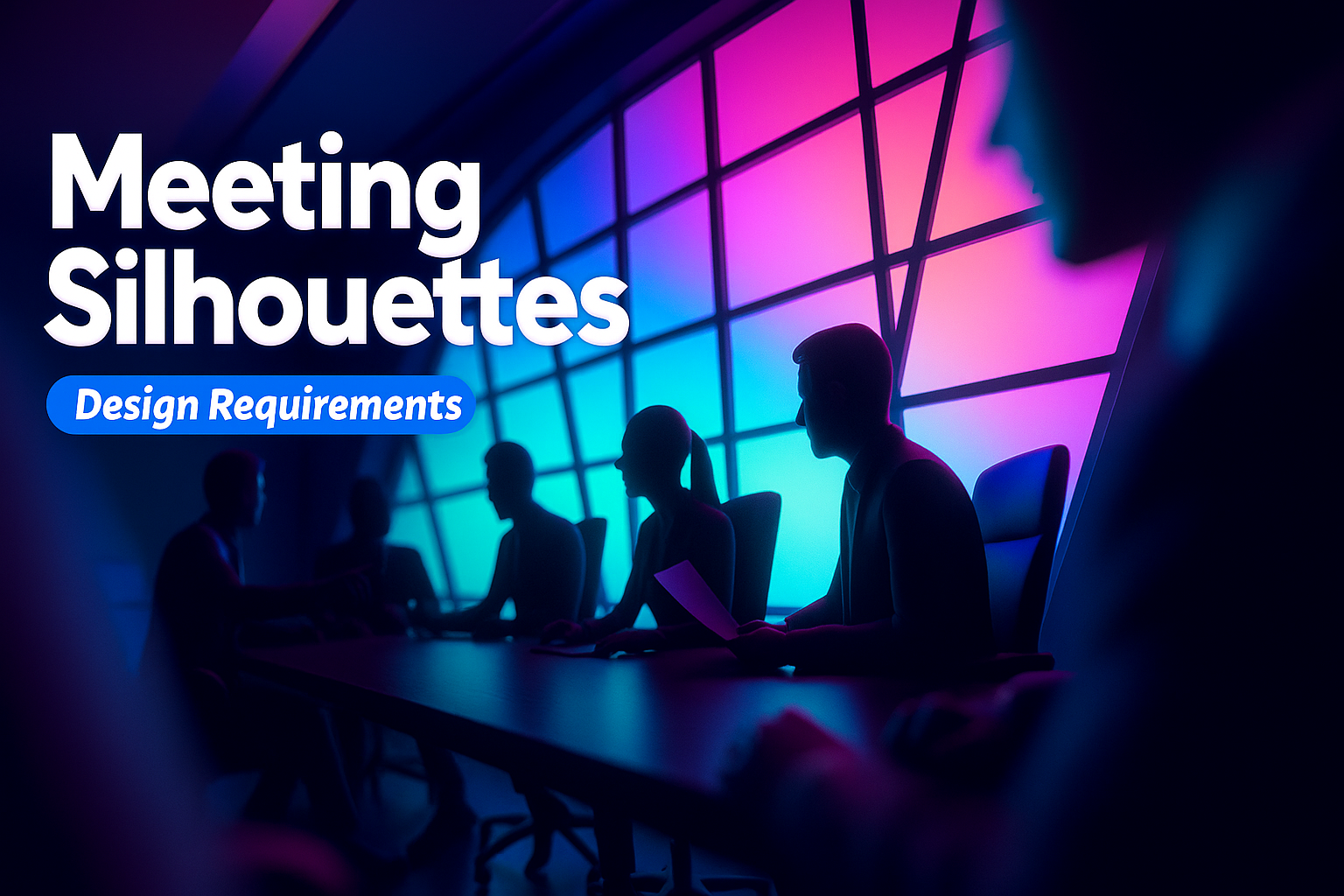 /Collection: /by davooda/Type: PNG/Silhouettes of people engaged in a meeting, set against a vibrant, colorful window. The scene captures a dynamic atmosphere with a professional yet engaging aesthetic.