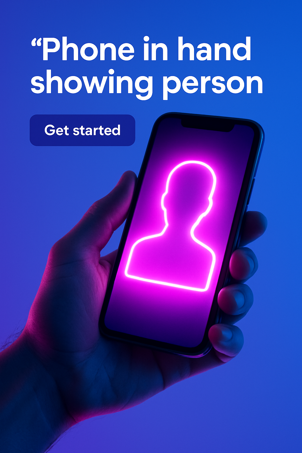 /Collection: /by davooda/Type: PNG/A hand holds a phone displaying a glowing silhouette, illuminated by vibrant neon pink light against a solid blue background, creating a captivating atmosphere.
