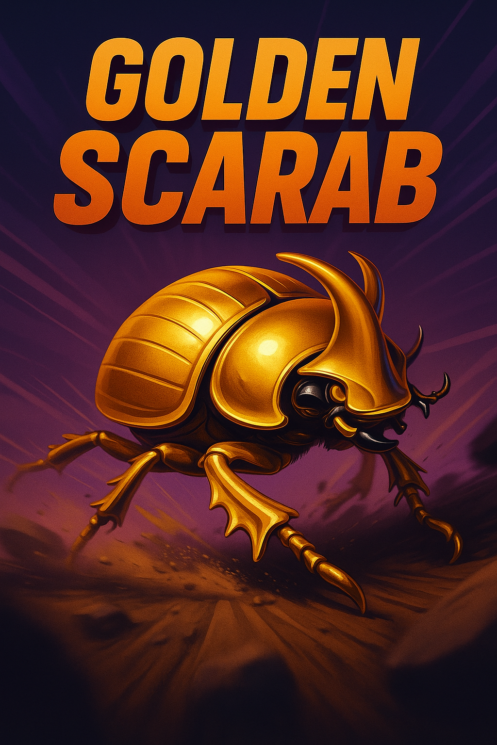 /Collection: /by davooda/Type: PNG/A striking illustration of a golden scarab beetle, featuring bold typography. The dynamic composition showcases smooth gradients and layered elements, creating depth and focus.