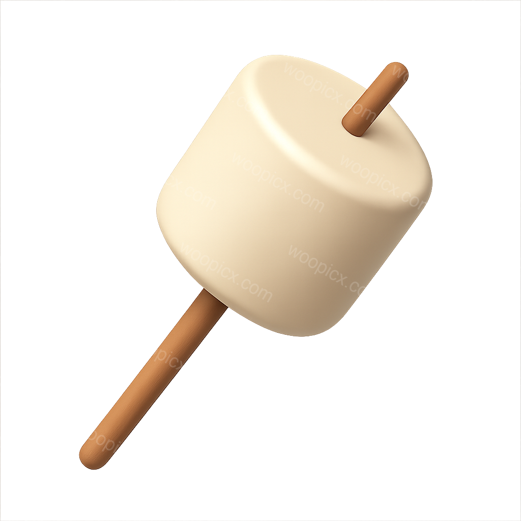 /Premium/Collection: /by davooda/Type: PNG/A stylized 3D representation of a marshmallow on a stick, featuring a smooth, glossy texture and a warm color palette. The isometric view enhances its volumetric appearance.