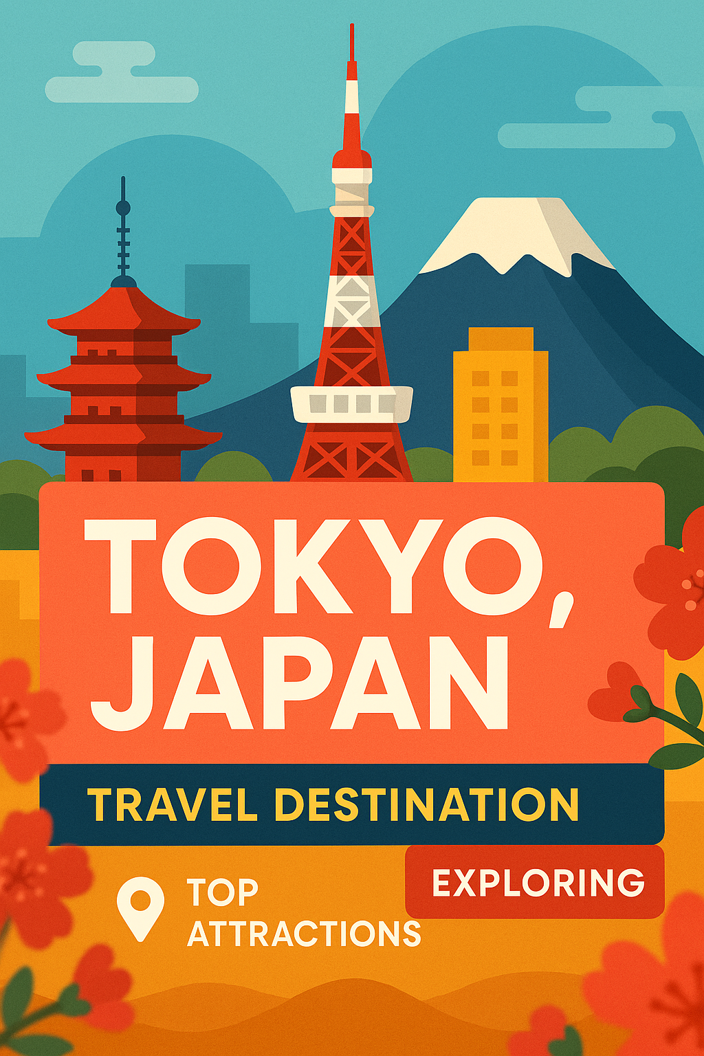 Travel Destination Illustration of Tokyo, Japan with Iconic Landmarks