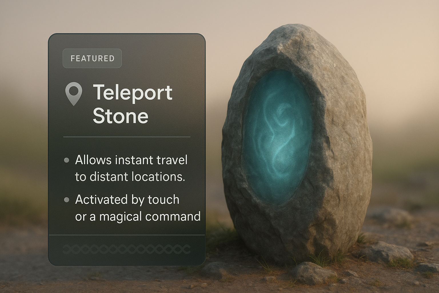 Realistic Illustration of a Teleport Stone with Informative Overlay