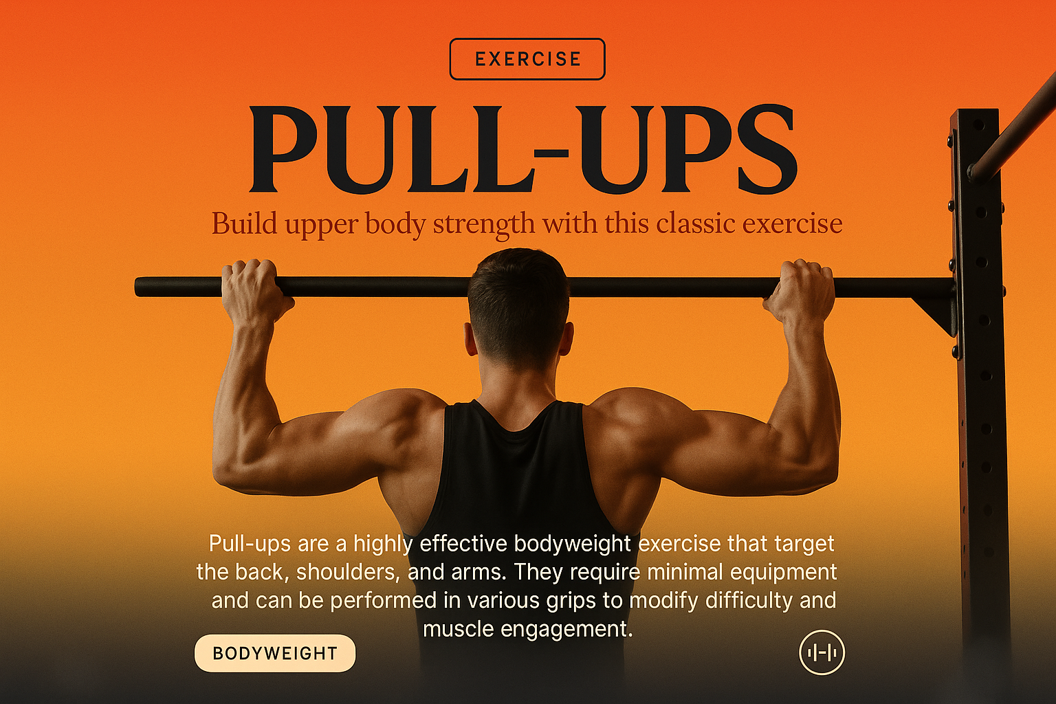 /Collection: /by davooda/Type: PNG/This image showcases a vibrant landing page design for pull-ups, featuring a bold title and subtitle. The layout includes an engaging gradient background, contrasting text elements, and a focus on exercise details.