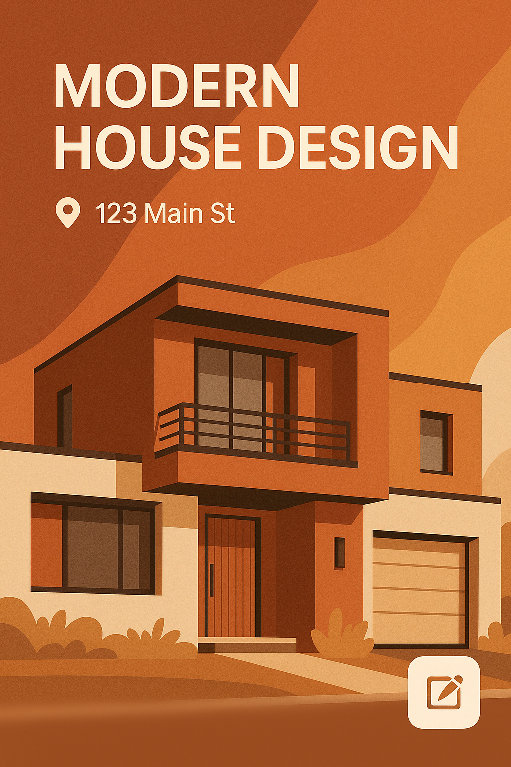 Illustration of a modern house featuring a contemporary design with warm color tones, ideal for real estate marketing or architectural showcases.