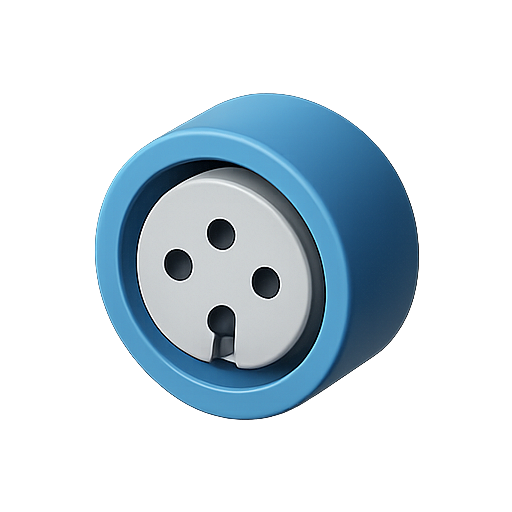 Stylized 3D rendering of a blue electrical socket component featuring three circular openings, ideal for product design or electrical equipment visualization.