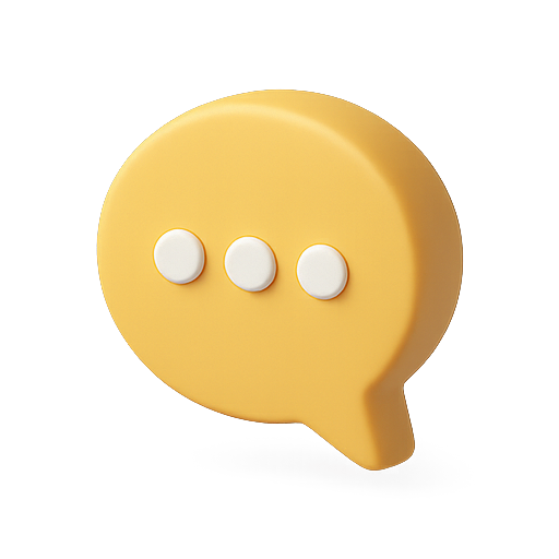 Stylized 3D speech bubble icon featuring three dots, ideal for representing messaging or communication concepts. Perfect for digital applications and social media.