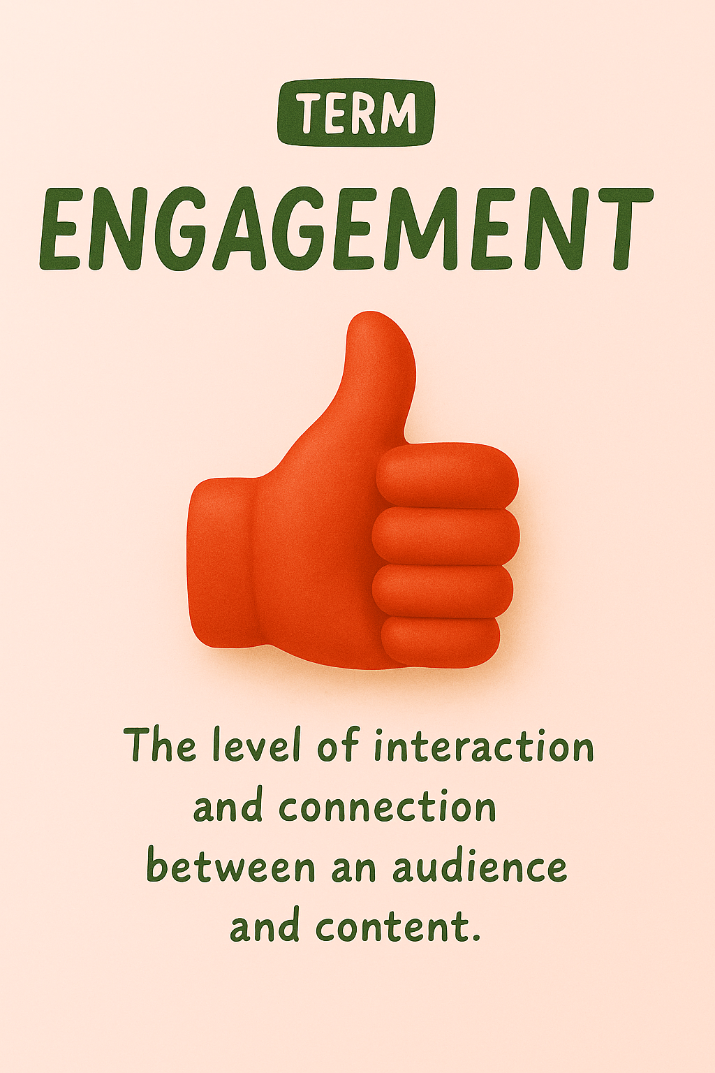 A graphic depiction illustrating the concept of engagement through a thumbs up icon and informative text, ideal for educational or marketing purposes.