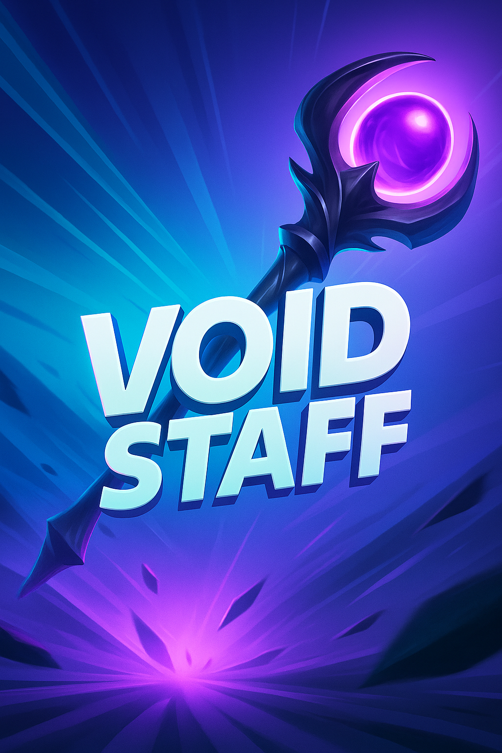 /Collection: /by davooda/Type: PNG/A dynamic graphic showcasing a void staff with a purple orb, set against a vibrant gradient background. The title 'VOID STAFF' is prominently displayed in bold, engaging typography.