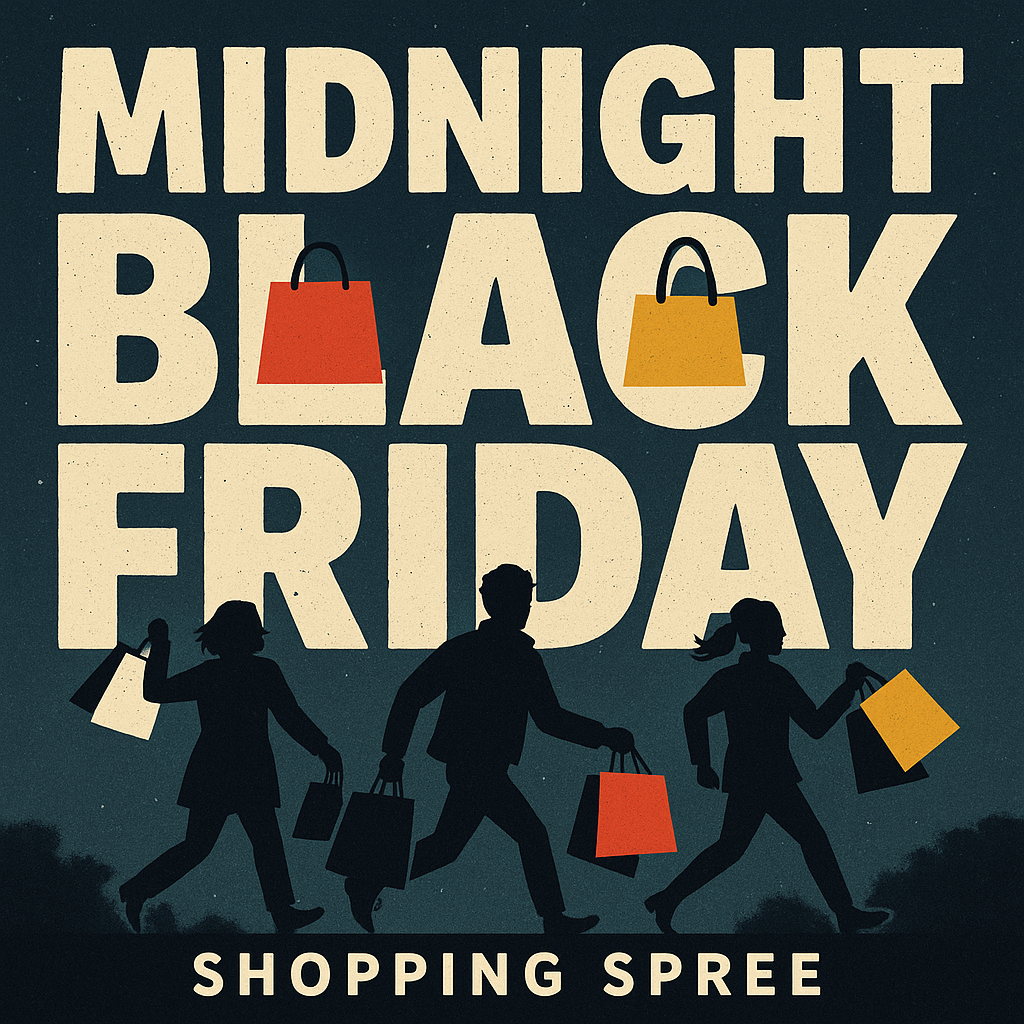 Midnight Black Friday Shopping Event Graphic