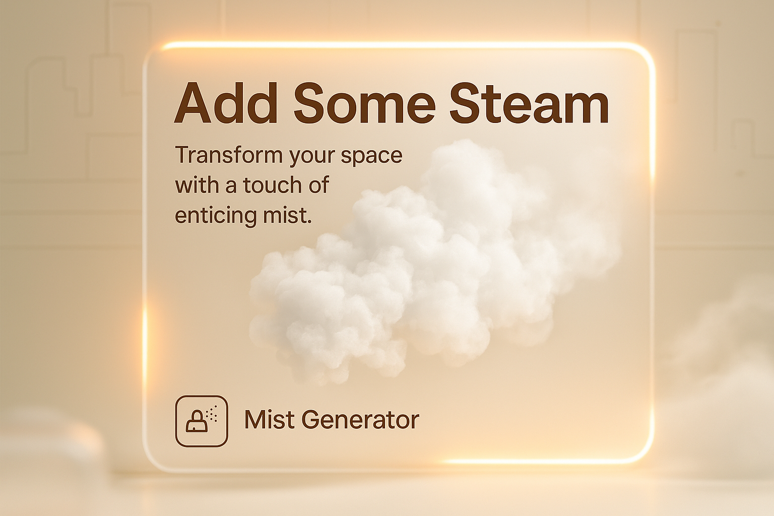 /Collection: /by davooda/Type: PNG/Elegant promotional graphic showcasing a mist generator. The soft cloud visuals and modern design elements create a calming atmosphere, ideal for home improvement marketing.