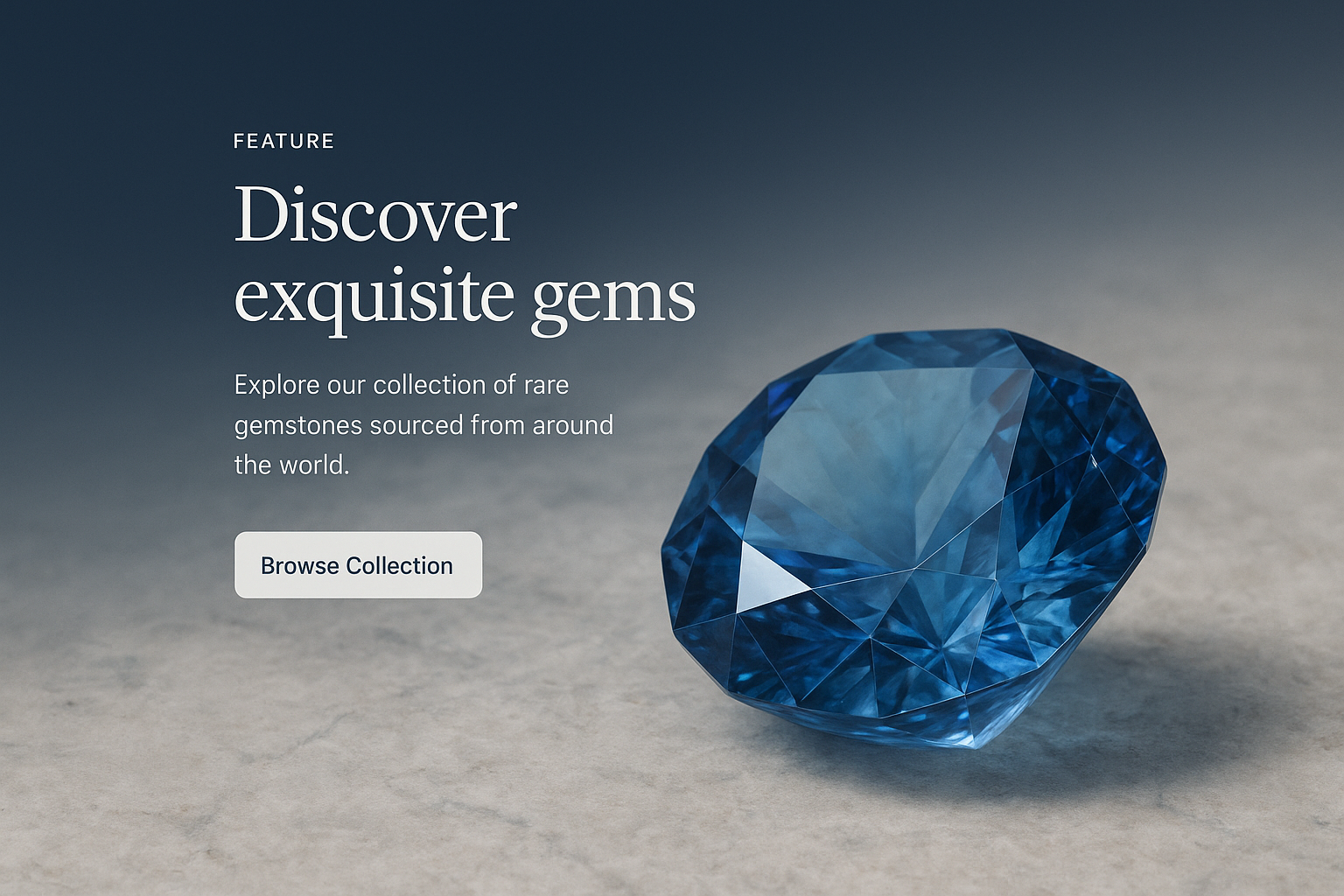 A beautifully crafted gemstone icon on a smooth surface, accompanied by a modern web layout featuring a headline and action button, ideal for showcasing luxury items.