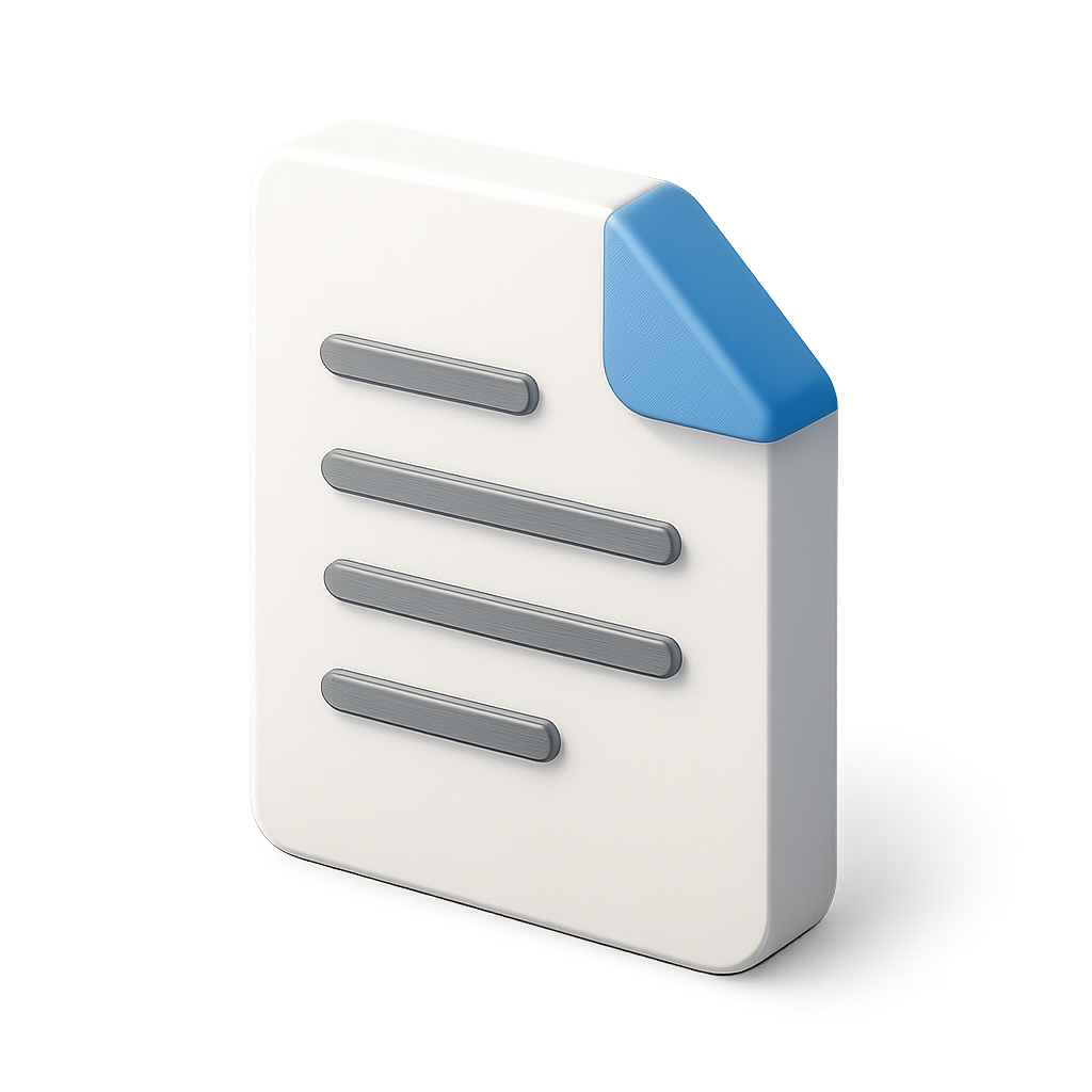/Collection: /by davooda/Type: PNG/A visually appealing 3D isometric icon featuring a white document with three horizontal lines and a blue corner highlight, set against a subtle gradient background.