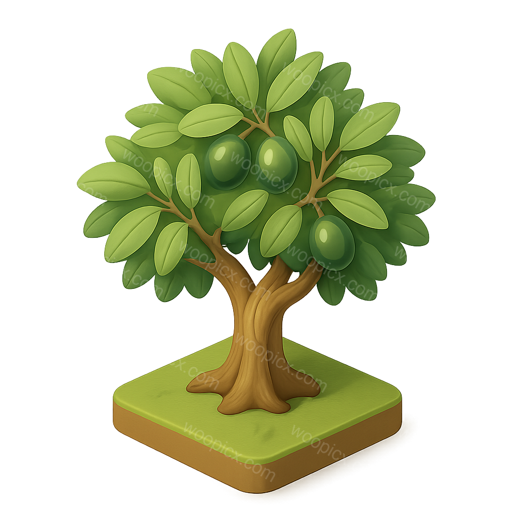 Stylized 3D Olive Tree Icon with Leafy Canopy