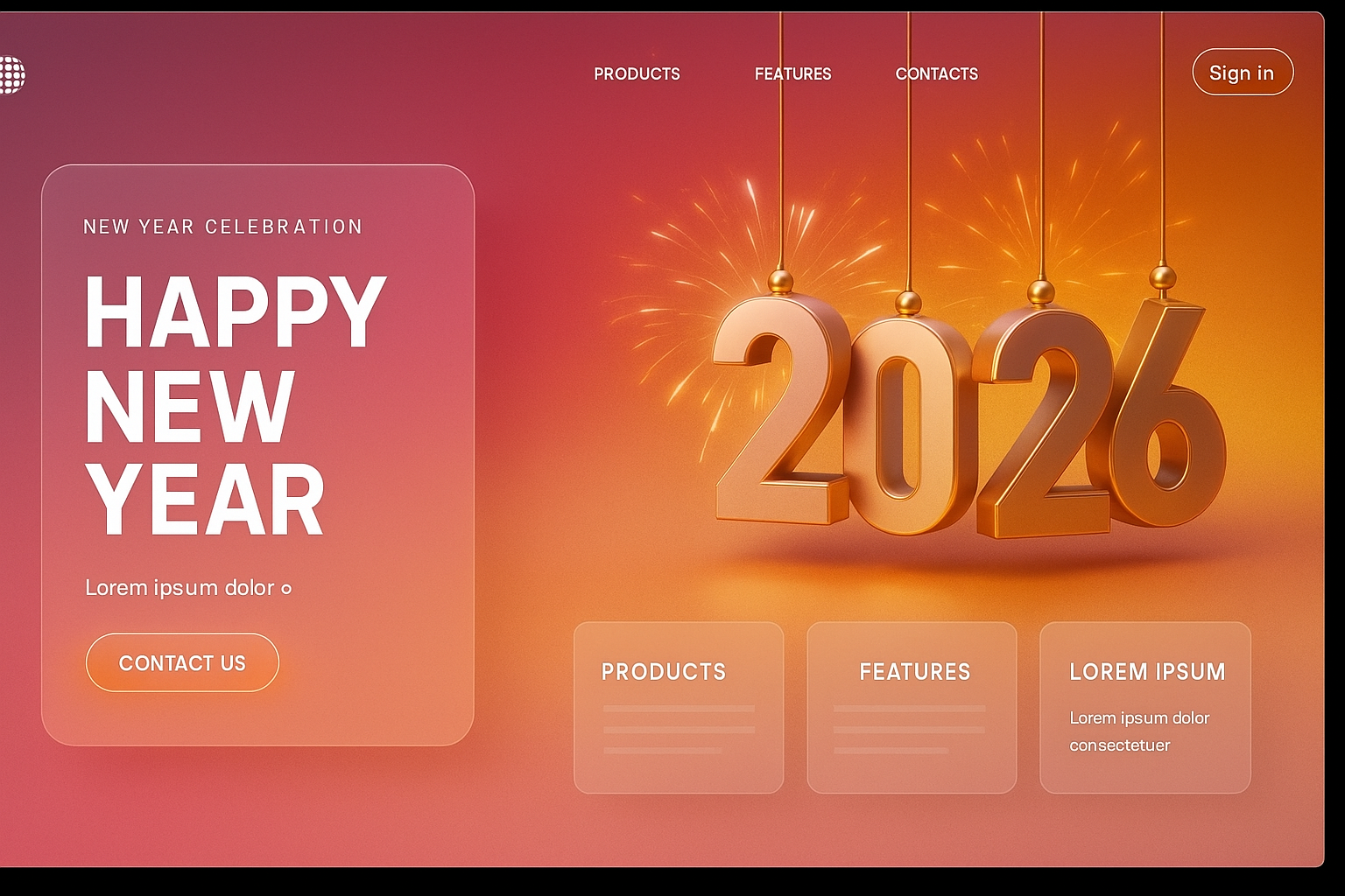 Futuristic New Year 2026 Landing Page Design with Glassmorphism