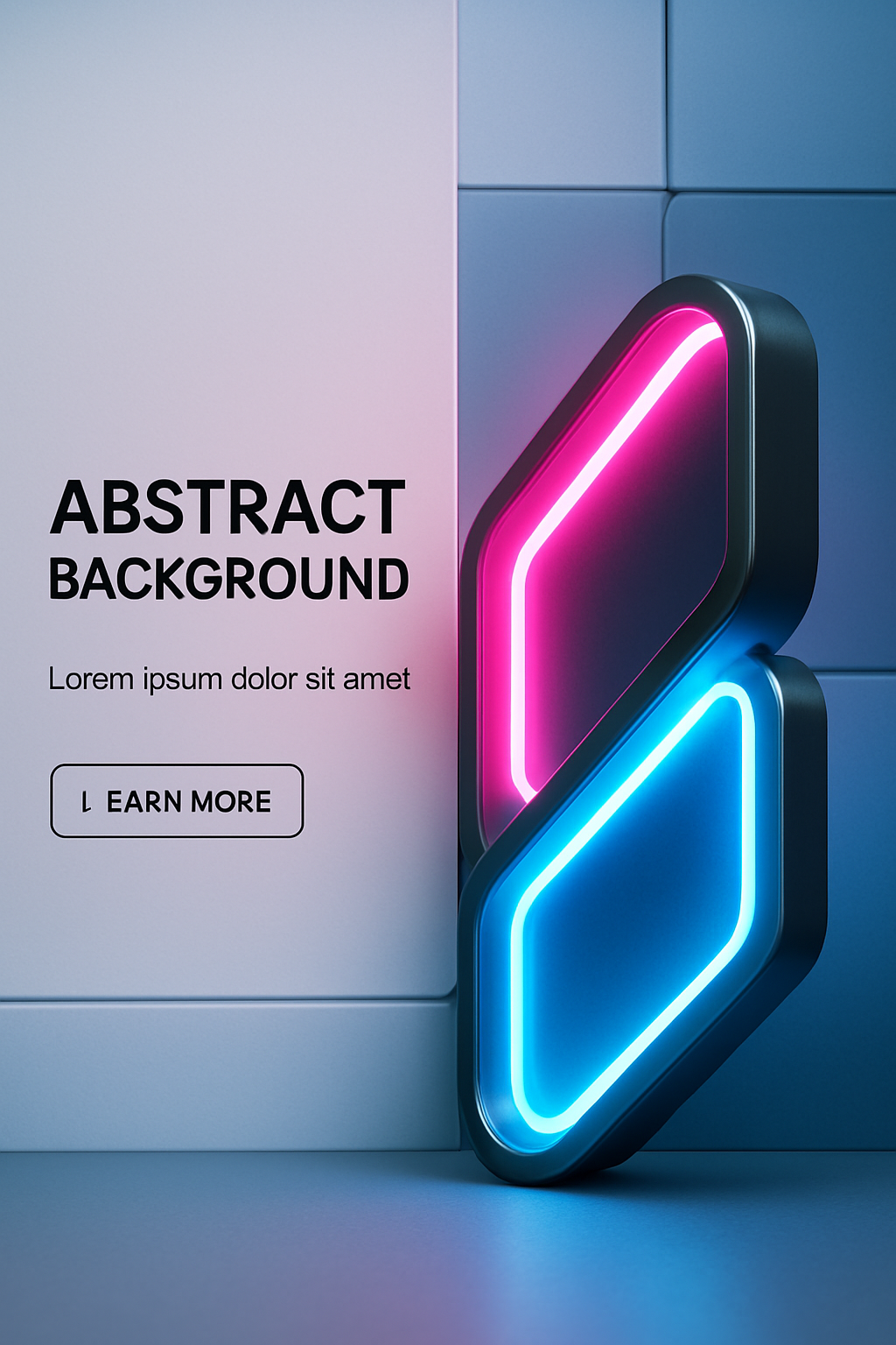 /Collection: /by davooda/Type: PNG/A vibrant 3D render showcasing glowing pink and blue neon lines in a corporate style. The design features geometric blocks and bold typography with a clear call-to-action button.