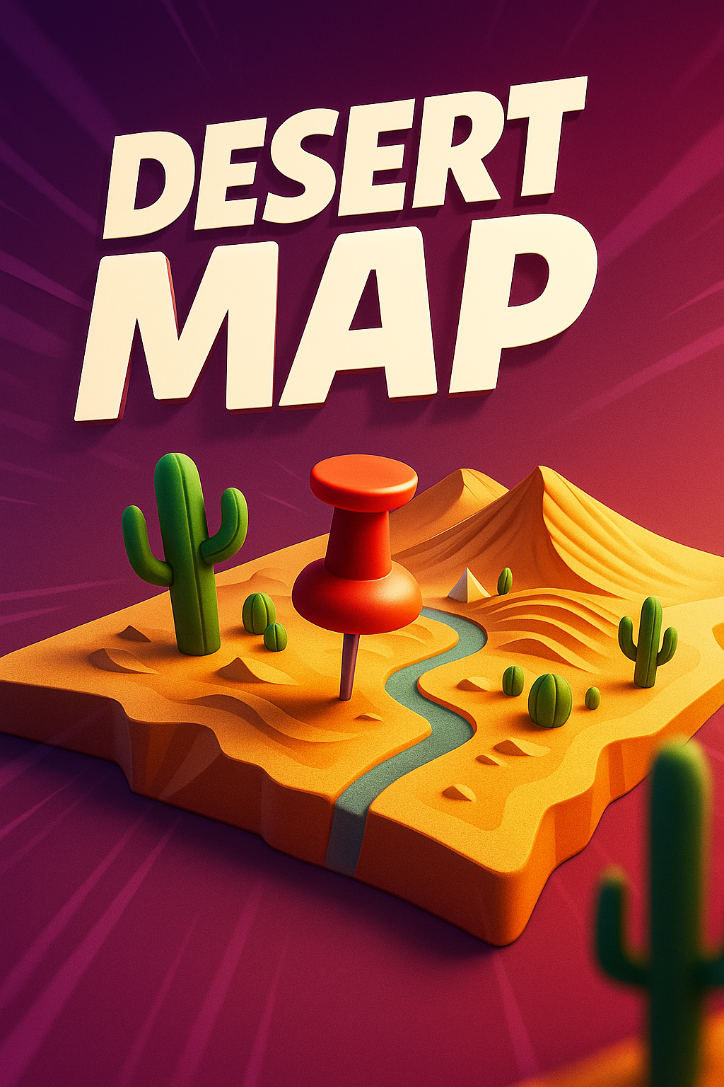 Dynamic Desert Map with 3D Illustration and Vivid Colors
