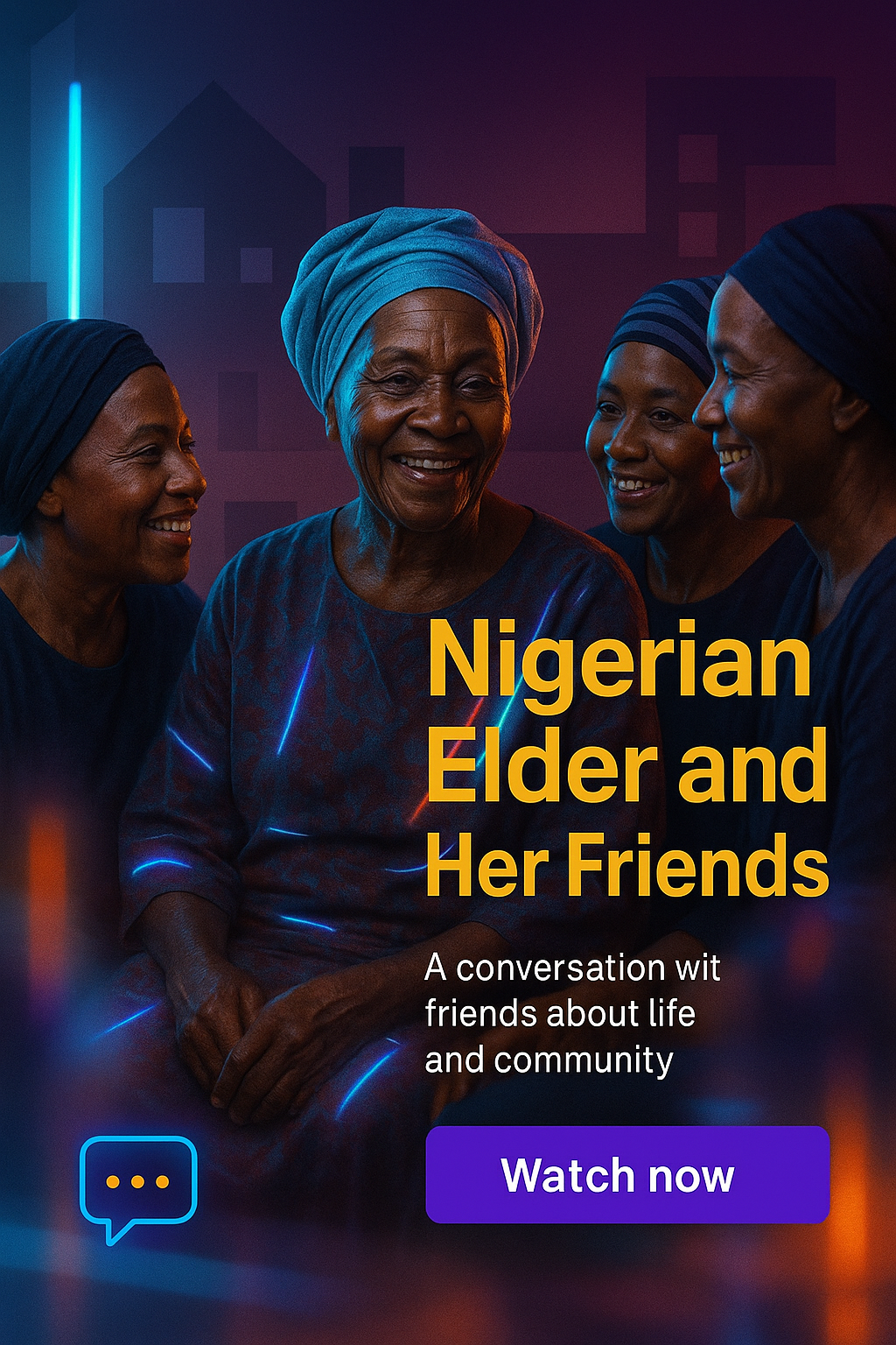 /Collection: /by davooda/Type: PNG/Engaging social media post showcasing a joyful gathering of elderly women discussing life and community, designed for a community-focused campaign.